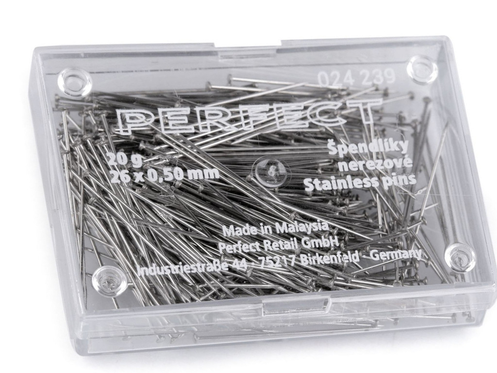 Acél gombostű 26 mm x 0,5 mm-es, rozsdamentes. Kb. 440 db/doboz PERFECT .Vékony Patchwork technikára alkalmas tű.