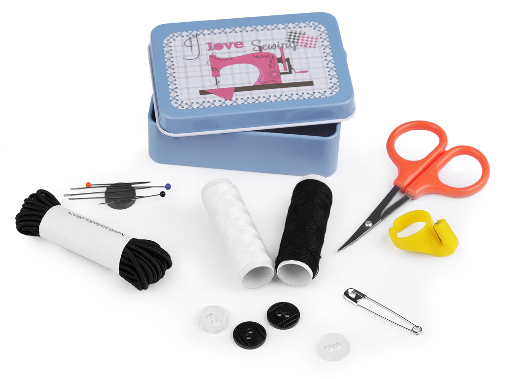 Kis praktikus varródoboz. 6,5 x 9 cm. Fém doboz. Uti készlet.