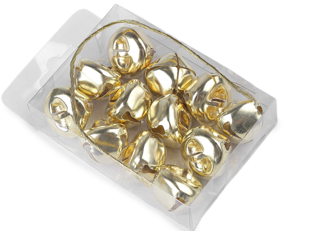 Kolomp, csengő, dekorációs kellék. 25 mm arany színben . 12 db / doboz