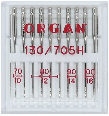 Háztartási varrógéptű Organ 130/705 H. vegyes méretek 70-80-90-100-as tűk 2-2 db (10 db/levél)