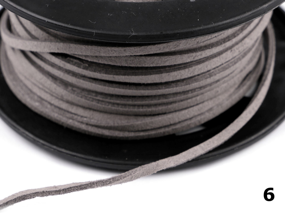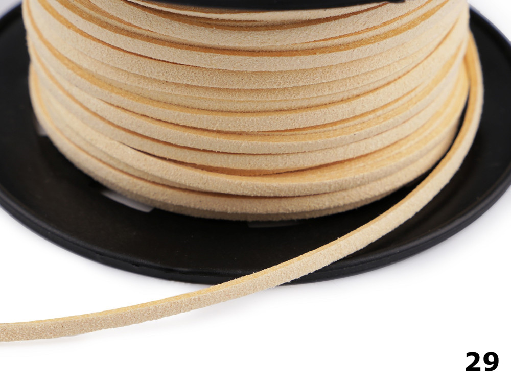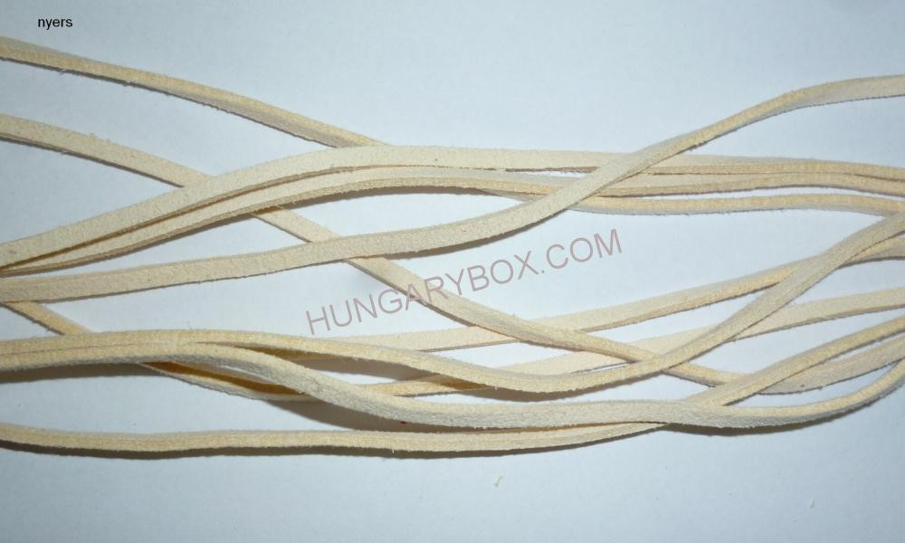 Velúrbőr szál, 3 mm x 2 mm szögletes, ecobőr nem fényezett, többféle színben; 30 méter/orsó