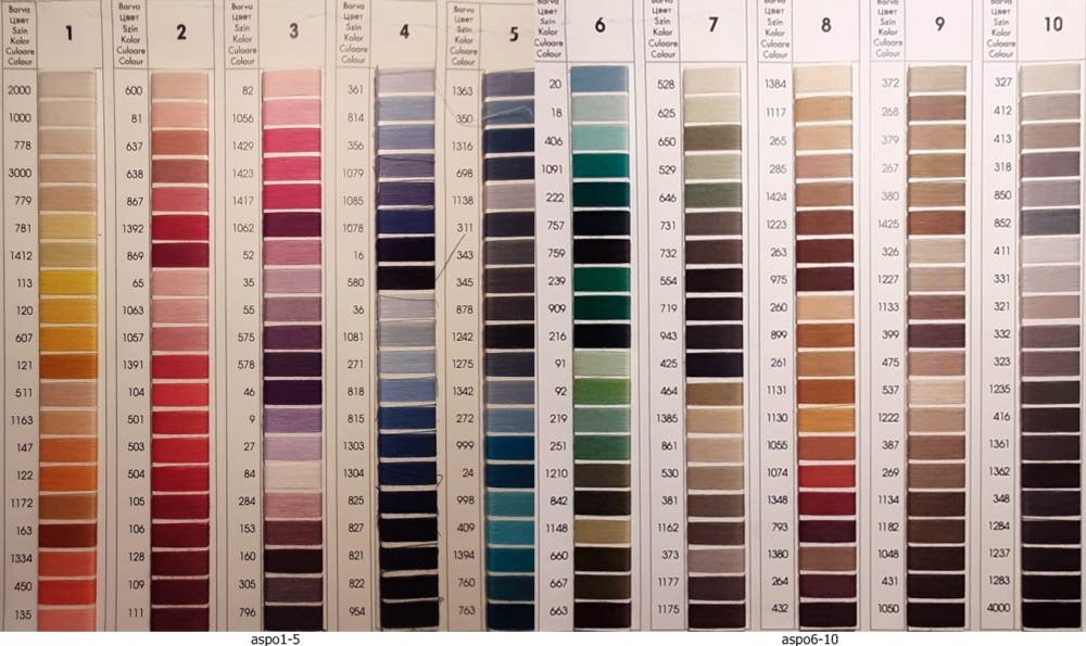 Aspo varrócérna 120-as vastagságú, 100 m/ cséve. Univezális varrodai és háztartási műszálcérna. 5 cséve/szín/doboz