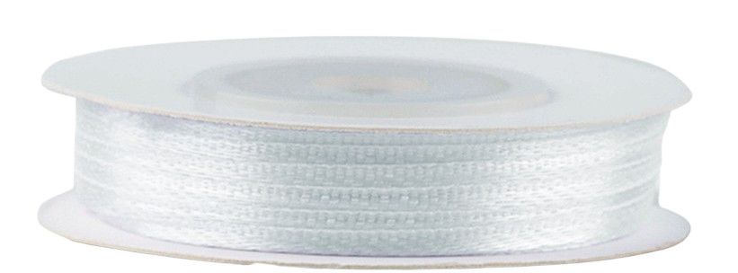 Szatén szalag 3 mm széles, fehér színű 30 m /orsó. Egyoldalas szatén szalag.