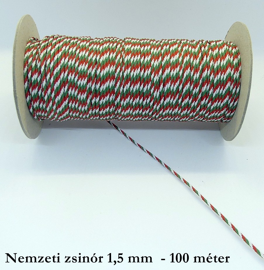 Nemzeti zsinór 1,5 mm vastag, hengeres,  hitelesítő zsinór,  PES (100 méter/orsó)